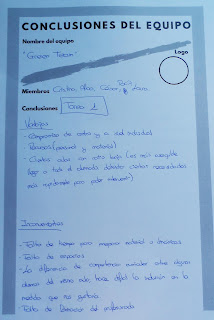 La sesión terminó con la puesta en común de las conclusiones de cada equipo al grupo clase y dando respuesta a la pregunta planteada de forma individual, al inicio de la sesión.