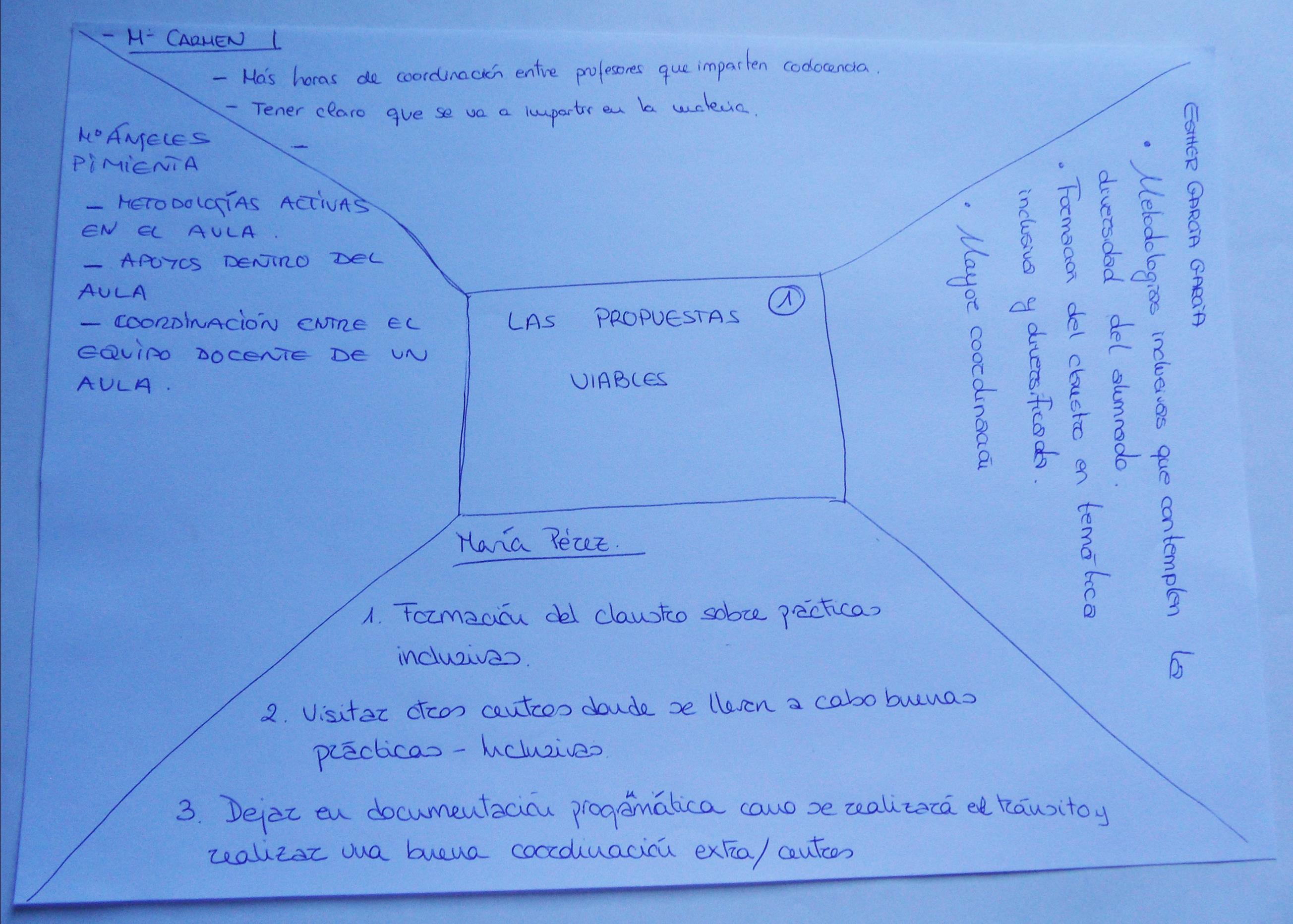 Terminado el tiempo asignado a esta propuesta, realizaron la puesta en común dentro del equipo, de los folios giratorios y cumplimentaron el documento "propuestas viables".